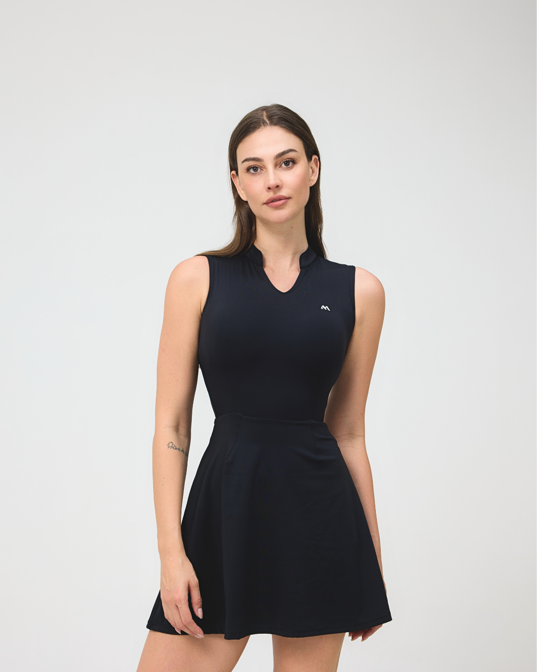 The AMpower Dress thoughtfully crafted from recycled materials, this sleeveless athletic dress is a statement of both style and sustainability. Its contoured fit enhances your natural silhouette, while the flowy skirt offers freedom of movement ; perfect for the court, gym, or casual days out. With its sleek collar detail and minimalist branding, this dress effortlessly blends sporty functionality with everyday sophistication. Step into confidence and comfort, because looking good and doing good should go hand in hand.